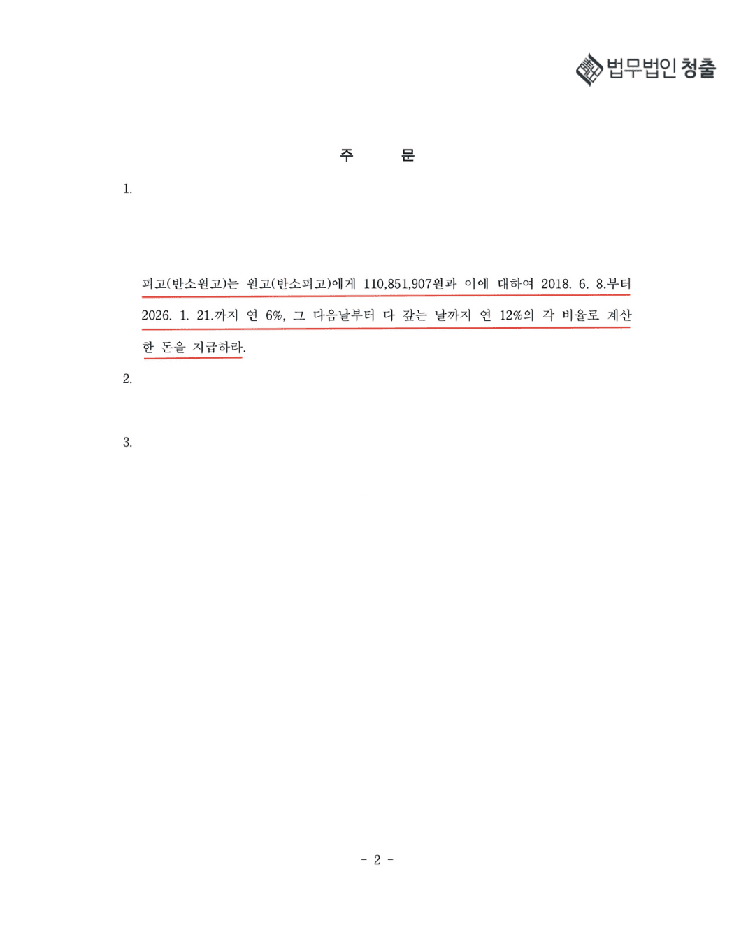 본 사건은 총액도급계약 구조 하에서 설계변경, 추가공사, 지체상금, 하자보수책임 등 건설분쟁에서 주로 발생하는 쟁점들이 종합적으로 다루어진 사건으로, 청출은 공사과정과 관련 계약문서, 공사일지 등을 체계적으로 재구성하여 1심보다 유리하게 변경된 결론을 도출하였습니다.